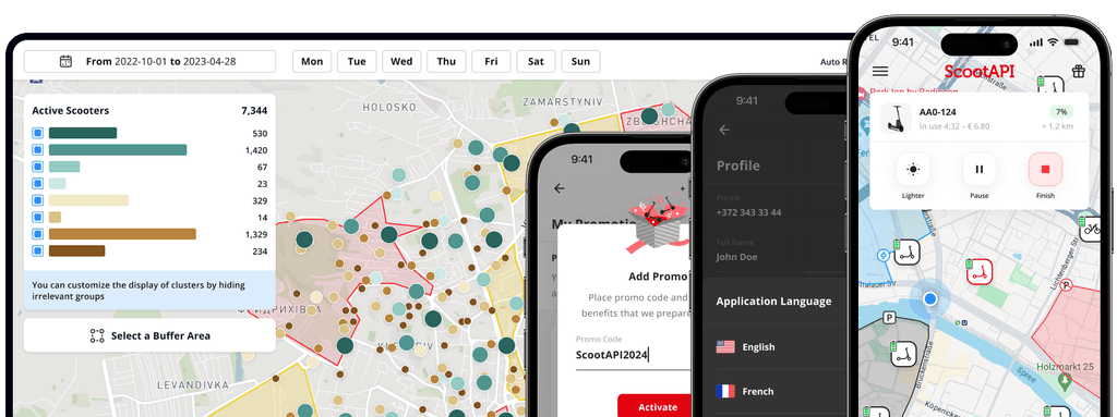 A comprehensive solution for e-scooter (from latest updates all possible e-vehicles) rental service including admin platform, mobile application and customized e-scooters from partners.